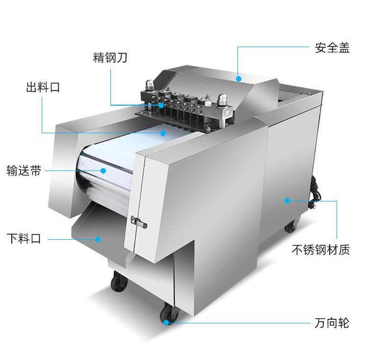 鸡鸭鹅切块机 排骨切块机 微冻肉切块机 鱼干切块机,切块大小可根据刀具改变。